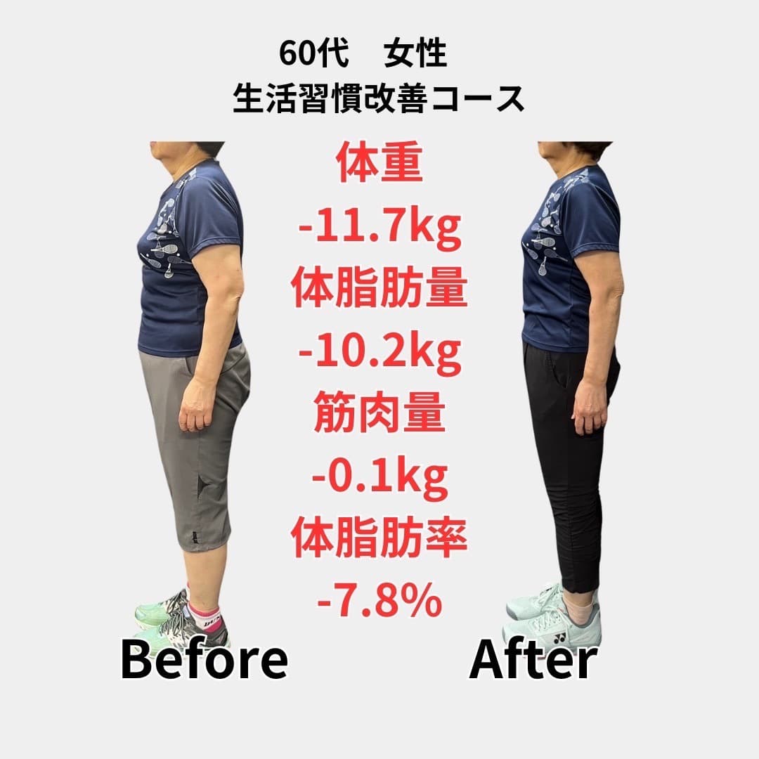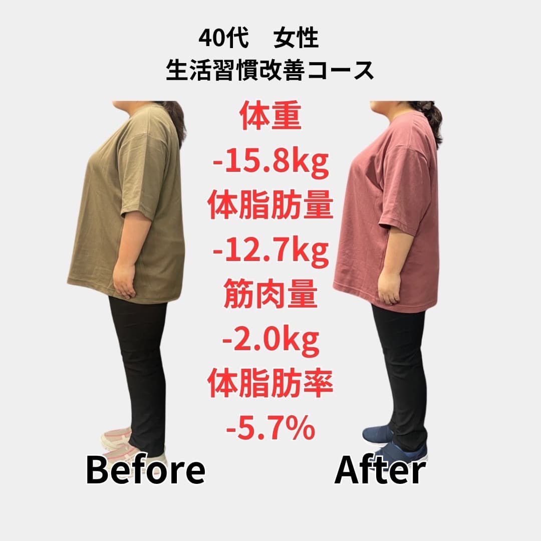 運動も毎回内容が違い、飽きる事なくあっという間に3ヶ月が経ち、終わってみたら目標体重もクリアし、食事の摂りかたも習慣化でき、寝つきも良くなり、本当に健康になれました。